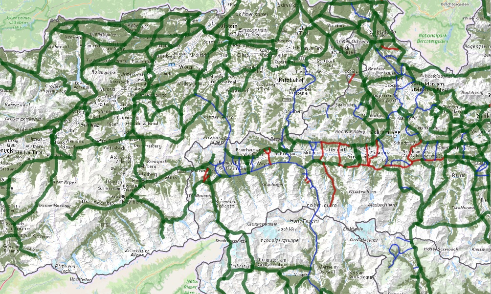 LRVA-2025: Current version of the integral dataset on habitat connectivity in Austria. This dataset takes into account all datasets and designations of habitat corridors from scientific projects and public sector projects (federal provinces). The dataset has been evaluated by the experts of the Cooridnation Platform "Habitat Connectivity Austria" and is updated as soon as new information and designations from projects are available. Further details are available in the endreport: https://docs.umweltbundesamt.at/s/AzZrHid6q9wkDDM As part of the update, the underlying data model was adapted. It is now possible to track all changes made during the update. All updated and valid habitat corridors can be obtained by selecting all edges that have the value “true” in the “valid” data set property. All edges with the value “false” are no longer valid. The reasons for the changes are noted in the ‘comment’ data record property. Most of the changes are so-called “technical changes.” As part of these changes, corridors have been adapted accordingly due to errors in the spatial location of existing crossing structures. The reclassification of corridors is due to new planned or adapted locations of wildlife crossing aids along the existing route. Description of the feature properties see feature catalog: https://geonetwork.lebensraumvernetzung.at/geonetwork/srv/ger/catalog.search#/metadata/e8044763-deb8-43d9-9d51-72b891fe5813 Data set download at: https://docs.umweltbundesamt.at/s/ep9JF44TjYxDY54, also includes QGIS project for direct use of the GPKG file. Two visualizations available. - Corridors classified by corridor category (supra-regional | regional | local) (see Quicklook) - Change layer: Current corridors and all outdated/revised corridor sections